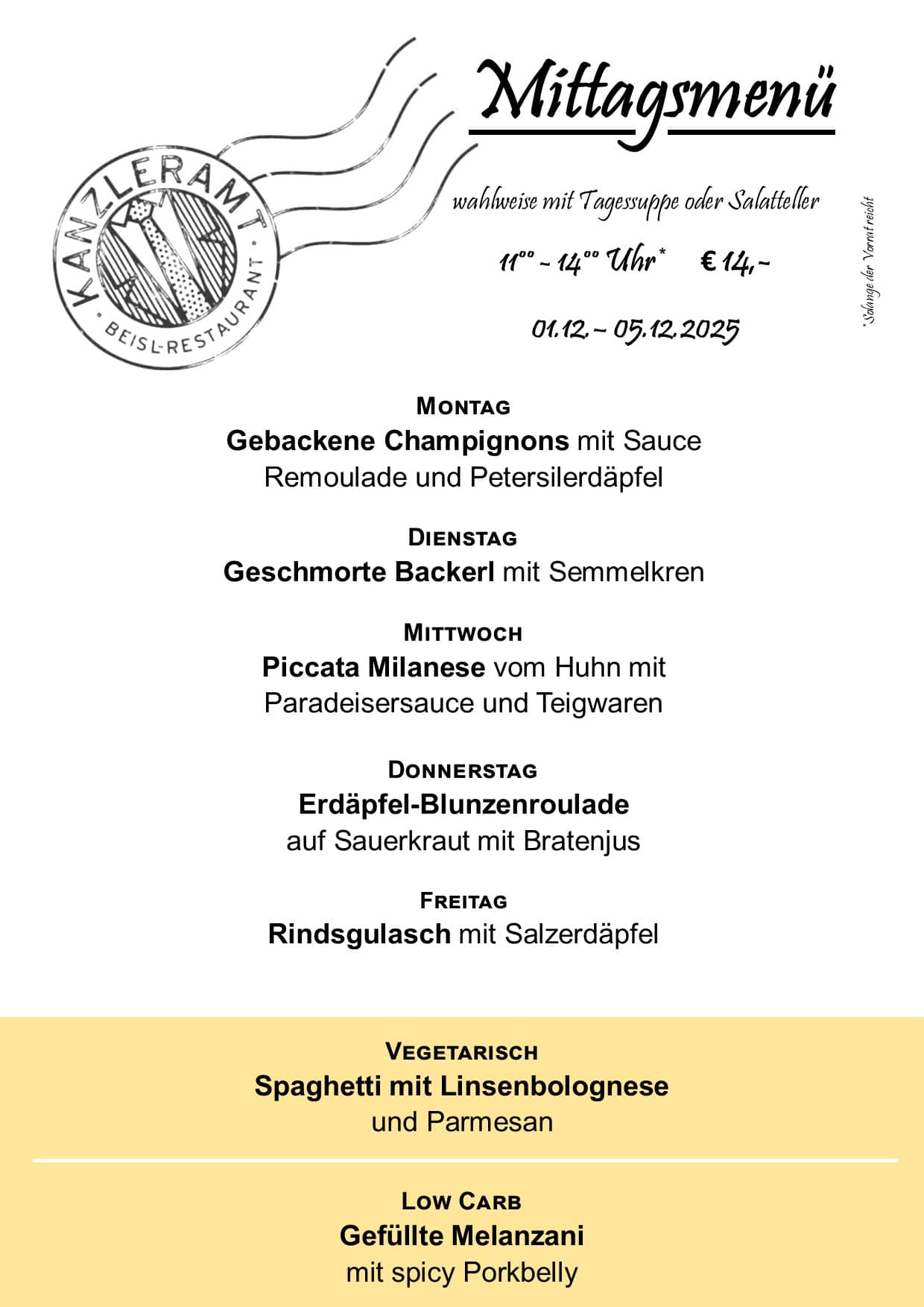 Hier informieren wir Sie immer wieder über Neuigkeiten rund um´s Restaurant Kanzleramt Wien, Spezialitätenwochen oder abweichende Öffnungszeiten.